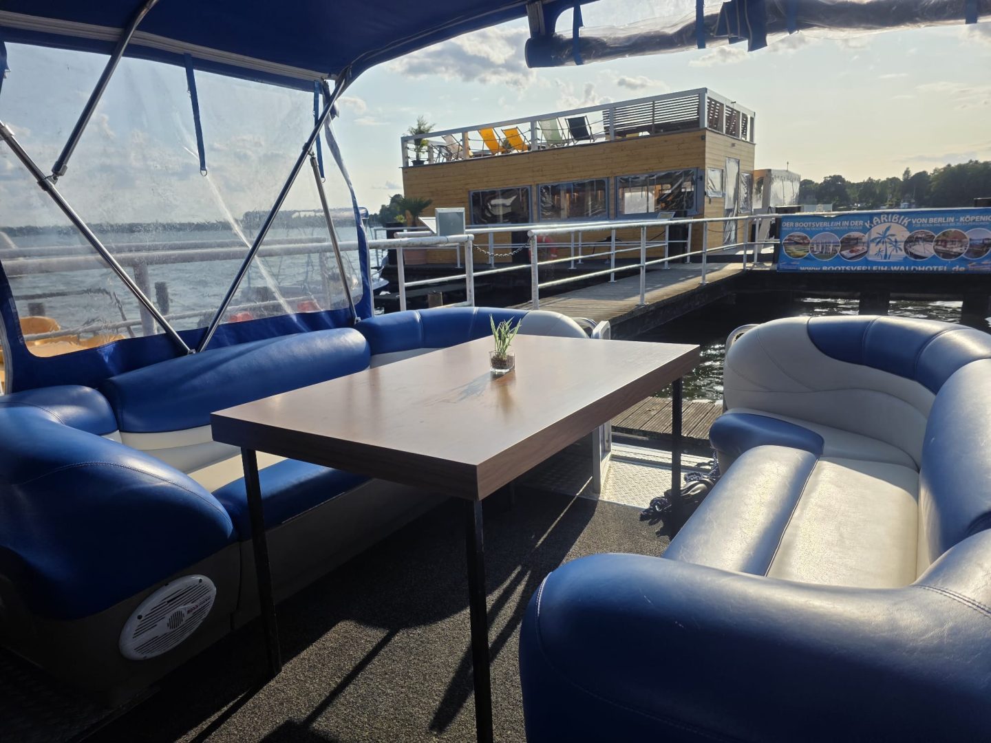 Willkommen an Bord des Karibik Eventfloßes, einer schwimmenden Eventlocation für bis zu 12 Personen mitten in Berlin Köpenick. Ohne Bootsführerschein lässt sich das Floß einfach steuern, sodass die Route ganz flexibel gewählt werden kann. Der 15 PS starke Motor sorgt dabei für eine sichere und komfortable Fahrt über Dahme und Müggelsee.